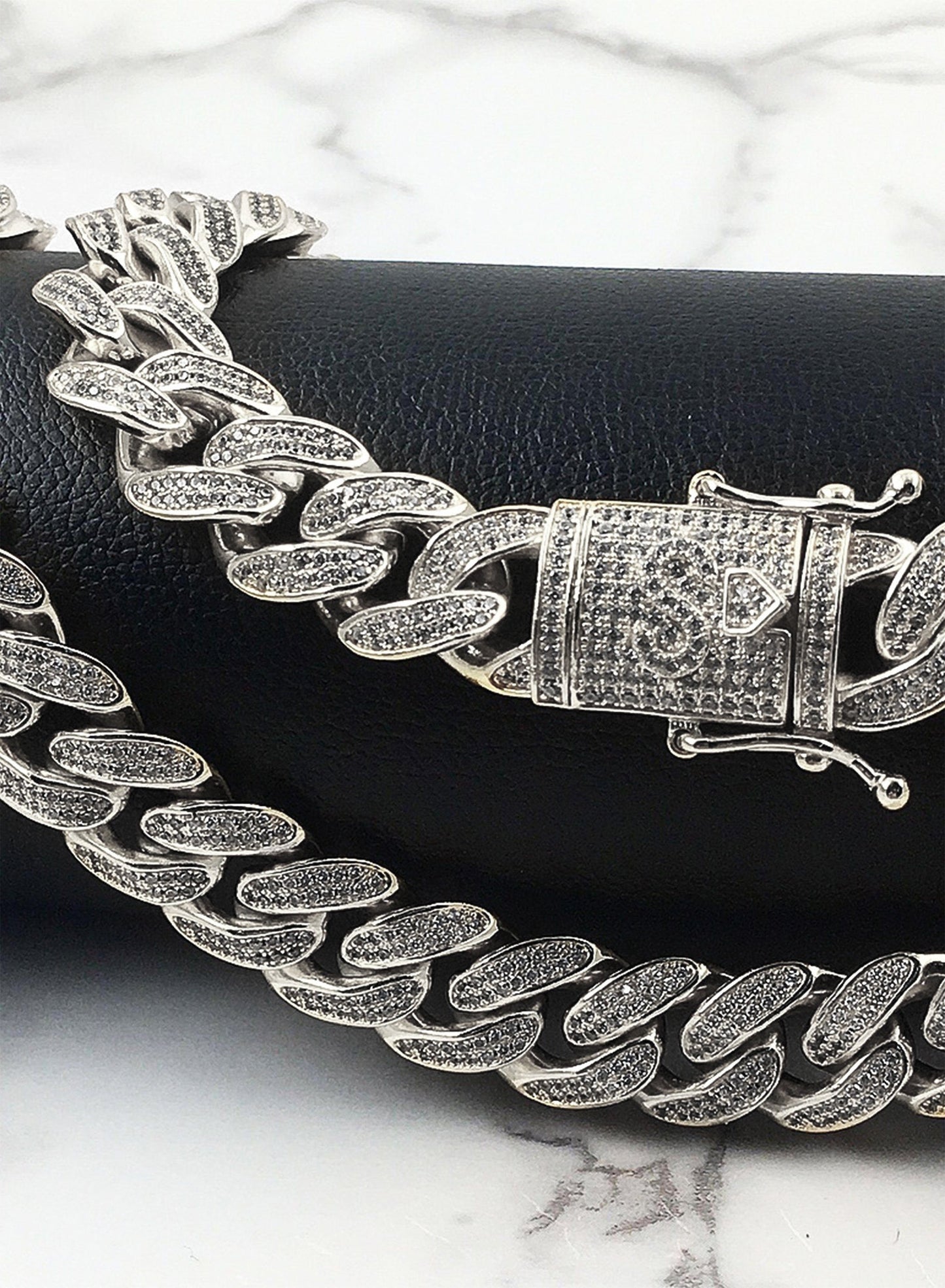 - Includes Diamond Cuban Link Chain & Bracelet